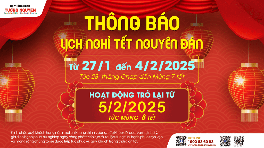 Hệ thống HEAD Tường Nguyên xin thông báo đến quý khách hàng lịch nghỉ Tết Nguyên Đán Ất Tỵ như sau: