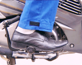 - Chân: Hai đùi khép nhẹ vào yên, tạo thành 2 đường thẳng song song, tạo cho người và xe thành một khối thống nhất, 2 mũi bàn chân hướng ra phía trước, 2 lòng bàn chân đặt trên thanh để chân, mũi bàn chân phải đặt nhẹ lên cần phanh để có thể sẵn sàng phanh trong những tình huống bất ngờ.